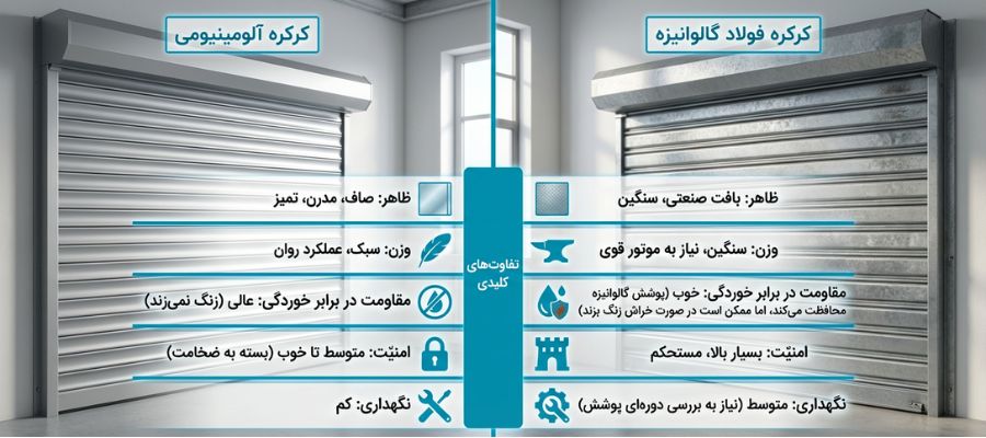 جدول مقایسه کرکره برقی آلومینیوم در مقابل گالوانیزه